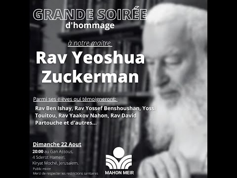 Hazkara du Rav Yeoshua Zuckerman (en français) | Dimanche 22 Aout